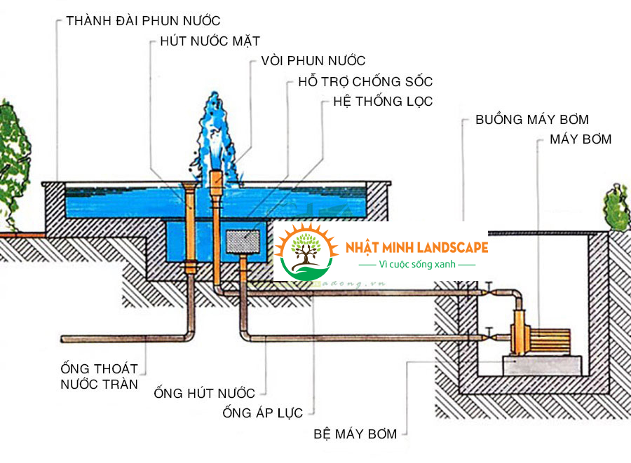 – Chi phí đầu tư hệ thống máy bơm, đường ống nước. Nếu muốn có những cột nước cao, tia nước bắn được ra xa thì cần phải có máy bơm công suất lớn và chi phí cũng không hề rẻ.